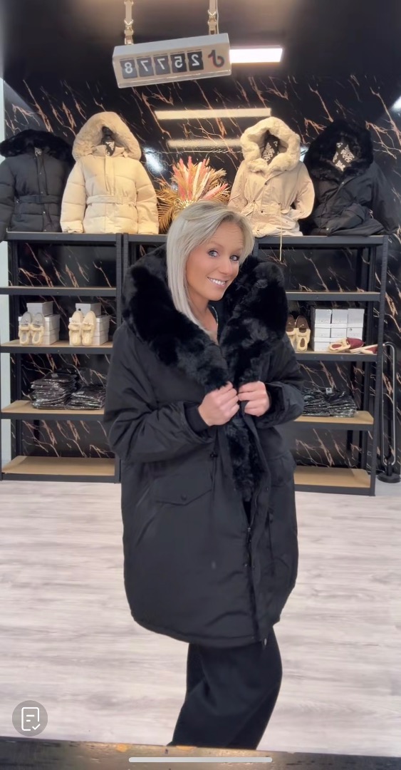 Lange winterjas fake fur • Zwart